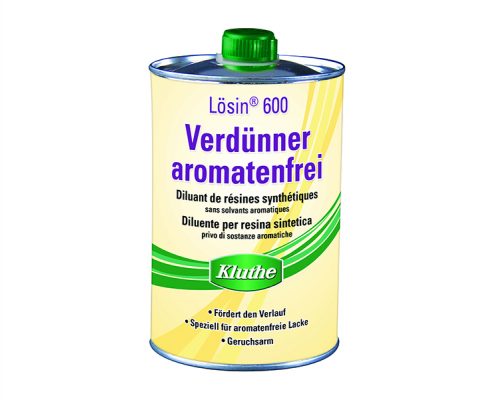 Lösin 600 Verdünner AF ist ein hochwertiger, aromatenfreier, äußerst geruchsarmer Verdünner und speziell für die Verdünnung von aromatenfreien Kunstharz-Lacken geeignet. Außerdem gewährt Lösin 600 durch seine ausgewählte Lösemittelkombination sehr gute Verlaufeigenschaften und einen hohen Glanz der Lackierung.