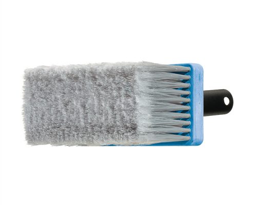 Heimwerker-Deckenbürste, 80 mm lange, helle PVC-Fasern, in Bündeln vulkanisiert mit ovalem Kunststoffkörper.
